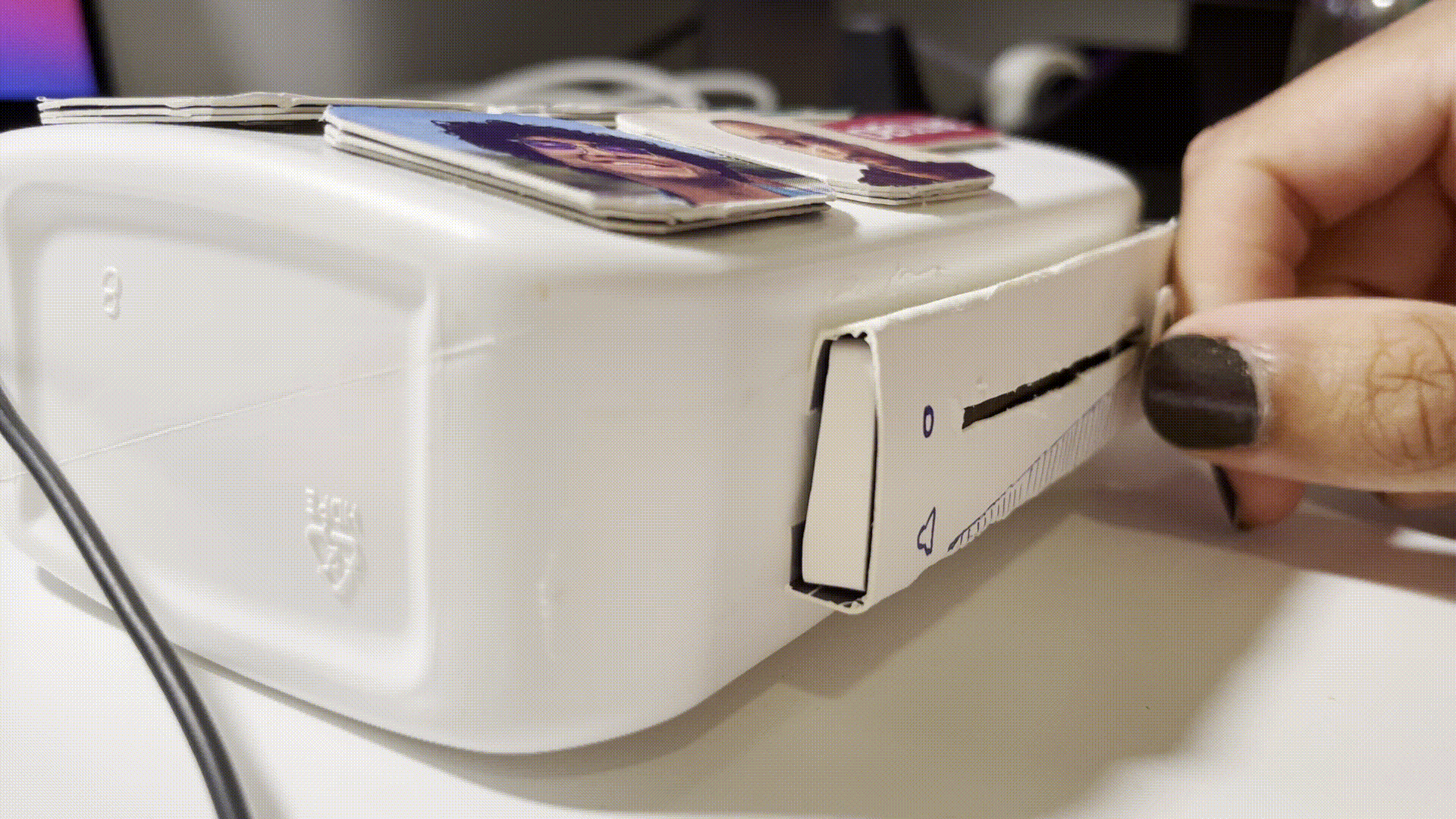 I went with a volume slider and constructed it from cardboard, and the controller itself was made from a piece of flexible plastic that could be bent to stay in play within the slider.
